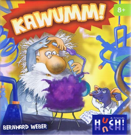 Kawumm!, c'est le bruit que fait l'explosion quand l'expérience au laboratoire rate. Pour respecter le jeu et son ambiance, il est vivement recommandé aux joueurs de tous clamer « Ka wu mm! », à l'unisson, quand l'infortuné joueur actif échoue dans une tentative et perd son tour. Il s'agit là d'un agréable jeu de type stop ou encore. Les joueurs piochent des cartes pour former des séries. Ils arrêtent de piocher quand ils le souhaitent pour mettre les cartes gagnées de côté. Mais s'ils persistent et ont un tirage malheureux, tout explose ! C'est alors que les adversaires se mettent à hurler. – À hurler quoi ? – « Kawumm! » C'est bien. Je vois qu'il y en a au fond qui suivent !