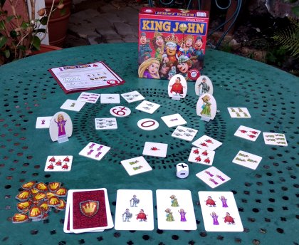Généralement, dans les jeux de bouchon, il faut être le premier à attraper celui-ci lorsqu'un événement survient. Parfois, il y a plusieurs bouchons et il faut attraper le bon. Dans King John, il y a 26 bouchons ! Ou plus exactement 4 personnages et 22 cartons. Selon le résultat combiné du dé et des trois cartes retournées, il faudra être le premier à attraper le bon élément. Par exemple, si le dé indique la princesse rose, il faudra attraper le carton avec 1, 2, 3, 4 ou 5 princesses selon le nombre de princesses roses visibles sur les cartes. Si le nombre dépasse 5, il faudra attraper le carton « 6+ ». Et si elle n'est sur aucune des 3 cartes, il faudra attraper le carton « 0 ». Parents, accrochez-vous : il va falloir gagner contre vos enfants et ce ne sera pas facile !