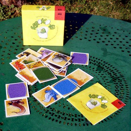 Au début de la partie, huit œufs sont disposés au hasard, en respectant toutefois les trois parties : un centre et deux bouts. Puis, à tour de rôle, les joueurs vont choisir entre retourner une carte ou en intervertir deux. Peu à peu, les bébés apparaissent. Le joueur plaçant le dernier morceau du crocodile le remporte, peu importe qui a trouvé les premières pièces. À la fin, il ne reste plus qu'à compter les bébés ! On apprécie la qualité irréprochable du matériel et la simplicité des règles. |
