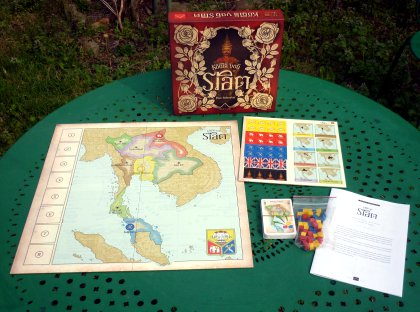 un faiseur de rois L'auteur propose aussi de jouer à quatre, en deux équipes de deux, avec interdiction de communiquer. Cette version m'a moins convaincu. Depuis que König von Siam, rare sur les rayons des boutiques françaises, est arrivé dans ma collection, j'en enchaîne les parties avec un plaisir toujours renouvelé. Il mériterait assurément une meilleure diffusion. |