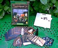 Mais il ne faut pas accumuler au hasard. À la fin de la partie, les cartes qui seront seules de leur type compteront en négatif. Celles qui ne sont que par deux ne rapporteront rien. Ce n'est qu'à partir de trois que la valeur arrive. Les cartes de valeur « 1 », qui sont en soi peu attrayantes, rapportent 5 points de bonus à celui qui en possède la majorité. Kuferkessel Co. n'est pas le premier jeu de collection. Il rappelle un peu dans son principe Les Cités perdues, puisqu'il ne faut pas se lancer dans une collection si on n'est pas sûr de pouvoir la mener assez loin. La règle offre une variante avec des objectifs secrets, et une variante pour trois joueurs (mais il vous faudra trouver un pion supplémentaire). Une curiosité remarquable : il vous faut, avant la première utilisation, découper les 4 cartes de coin avec des ciseaux (ou un laser). À quand les cartes à colorier avant de jouer ? Un petit jeu sympathique pour deux ou trois joueurs, mais surtout une esthétique très soignée due, une fois de plus, au talent de Franz Vohwinkel. |
