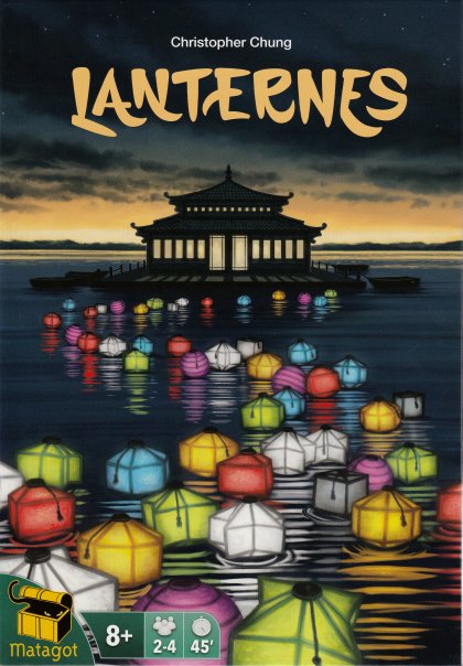 Dans la famille dominos carrés, je voudrais un jeu d'inspiration orientale. Dans Lanternes, les joueurs posent à tour de rôle un domino qui va générer des prises de cartes pour eux-mêmes mais aussi pour les adversaires. La pose est très libre puisqu'il n'est pas indispensable que deux côtés qui se touchent soient de même couleur. Le joueur actif gagne une carte pour chaque côté du domino posé dont la couleur est identique au côté voisin. Par ailleurs, il peut recevoir un ou plusieurs jetons s'il pose adroitement un domino avec une image. Puis, chaque joueur autour de la table reçoit une carte de la couleur qui lui fait face sur le domino nouvellement posé. Les cartes permettent ensuite de former des combinaisons et de gagner des points de victoire. Les jetons permettent d'échanger des cartes avec la pioche. Toute l'astuce du jeu réside dans la gestion de la pénurie. Quand une couleur de carte est épuisée, le joueur ne reçoit rien. Idéalement, il faudrait donc poser un domino qui rapporte le moins de cartes possible aux adversaires tout en optimisant le gain personnel. Encore faut-il avoir en main les bonnes pièces. Peu captivant à 2, le jeu prend une toute autre figure à 3 et surtout à 4 joueurs. Mais il reste loin de l'intérêt de nombreux jeux de la même catégorie. Variante : et si on jouait en équipes ?Comme souvent, le jeu gagne énormément à être joué en équipes de deux joueurs se faisant face. La pose de dominos est alors plus subtile puisqu'il faut à la fois favoriser son partenaire sans arranger les affaires des deux adversaires. Curieusement, cette option n'est pas proposée par l'éditeur.