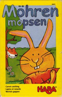 Au début de la partie, toutes les cartes cachées sont des lapins. Il est donc facile de retourner un lapin et donc de gagner une carotte. Mais chaque lapin trouvé est retiré et remplacé par un renard et il devient de plus en plus difficile de trouver un lapin. On peut alors choisir de lancer le dé qui résoudra peut-être nos problèmes. |