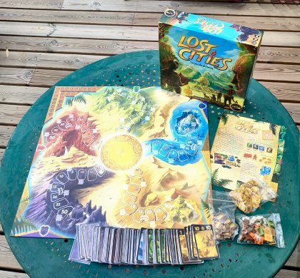 Lost Cities - Le Jeu de plateau s’inscrit dans une généalogie claire. On part du célèbre jeu Les Cités perdues, ce duel tendu où deux explorateurs s’engagent dans des expéditions, chacun jaugeant le moment exact où poser ses cartes malgré le risque d’un départ coûteux. Reiner Knizia y avait trouvé l’équilibre rare entre simplicité mathématique et tension dramatique : chaque carte posée était à la fois un progrès et un pari. Avec Keltis, le même principe – séquences croissantes ou décroissantes de cartes – fut élargi pour devenir un jeu de plateau familial, où plusieurs pouvaient participer, avec des objectifs communs sur un parcours. Plus accessible, plus fluide, mais on perdait le thème initial, ce qui était un peu dommage. La version Lost Cities - Le Jeu de plateau, pour 4 joueurs, tente d’occuper un entre-deux. Elle retrouve l’univers des expéditions, et cherche à reproduire l’intensité du duel dans un cadre multijoueur. Là réside son mérite… et sa limite. On retrouve bien la lisibilité et la pureté des règles, signature de Reiner Knizia. Les sensations de prise de risque sont encore présente. Le jeu s’adapte bien à un public large : les parties sont rapides et les tours fluides. Mais la tension frontale du duel se dilue à quatre. Ce qui faisait l’essence de Cités Perdues – surveiller une seule main adverse et peser chaque défausse – disparaît un peu. À plusieurs, la probabilité qu’une carte importante circule ou disparaisse sans qu’on puisse rien y faire est grande. Lost Cities - Le Jeu de plateau se vit comme une tentative honorable de socialiser un bijou de duel. On apprécie le retour au thème initial mais si l’on cherche la quintessence du risque et du contretemps, c’est toujours du côté du face-à-face du jeu initial, Les Cités perdues, que va notre préférence.
