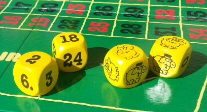 Lucky Number est un jeu de roulette… sans roulette ! En fait, elle a été remplacée par deux dés qui génèrent un nombre compris entre 1 et 36. Quant au zéro, il est simulé par deux autres dés à six faces comportant trois cochons mâles, deux cochons femelles et un zéro.