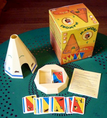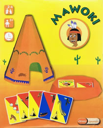 Le fonctionnement est plus classique : Mawoki est un jeu de défausse assez traditionnel, qui demande cependant une certaine attention. Chaque carte est double. Pour poser une carte, il faut qu'une de ses moitiés soit exactement identique à une de celles de la carte précédente : même couleur et même dessin. Puis, on applique l'ordre indiqué au centre de la carte : rejouer, faire piocher, piocher soi-même ou ne rien faire. Le premier qui a posé toutes ses cartes gagne la partie. |