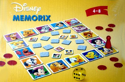 Les seize grandes cartes sont disposées face visible en un grand carré. Les petites cartes, qui représentent les mêmes personnages de Walt Disney, sont disposées en son centre, également face visible. À chaque tour, on jette le dé et on avance le pion qui s'arrête sur un personnage. Si celui-ci est visible au centre, il faut le retourner face cachée. Sinon, il faut le retrouver pour gagner un jeton ! Cette règle pourrait tout à fait se pratiquer avec n'importe quel type de Memory, mais le fait de disposer de petites et de grandes cartes facilite pas mal la pratique du jeu. La règle est intéressante, mais le titre a dû faire penser à nombre d'acheteurs potentiels qu'ils avaient déjà le jeu dans leur ludothèque.