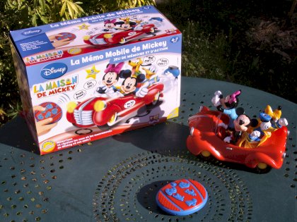 Il suffit de répéter le son, en appuyant sur le bon bouton de la télécommande. La voiture repart alors et s'arrête un peu plus loin, en émettant une séquence de 2 sons, puis 3, puis 4, etc. Après chaque séquence réussie, on passe la télécommande au joueur suivant. Le premier qui se trompe a perdu. Archéoludologues, ne loupez pas ce chaînon manquant entre le jouet et le jeu. Mémo Mobile GNPour voir la Mémo Mobile de Mickey en grandeur nature, c'est dans les séjours Rêves de Jeux et nulle part ailleurs… La séquence suivante a été tournée en août 2008. |