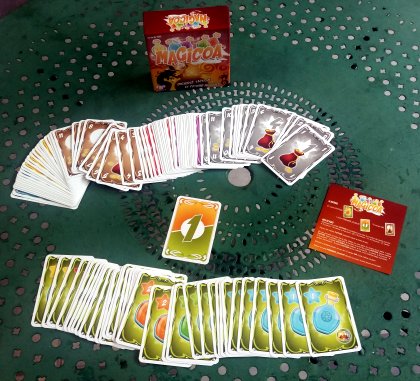 Magicoa est un jeu de levées. Au centre de la table, cinq cartes potion sont à gagner. Chacune d'elle ira au joueur qui aura posé en face la carte la plus forte. Comme dans Stupide Vautour !, tous les joueurs ont une main identique au départ. Ils devront engager ces douze cartes, deux par deux, lors de six tours de jeu. La contrainte, c'est que vous devez choisir secrètement et simultanément les deux cartes que vous allez engager et dans quel ordre. Puis, à tour de rôle, chacun va révéler sa première carte et la poser en face de la potion convoitée ; on fera de même pour la deuxième carte. Les potions gagnées ont une valeur. Certaines ont également un pouvoir, mais vous devrez choisir immédiatement si vous voulez gagner les points ou acquérir le pouvoir. Le jeu est astucieux et les plus habiles sorciers devraient y briller. Les règles sont faciles et rapides à expliquer. Il n'est pas rare qu'on subisse un sortilège qui oblige à enchaîner les parties.