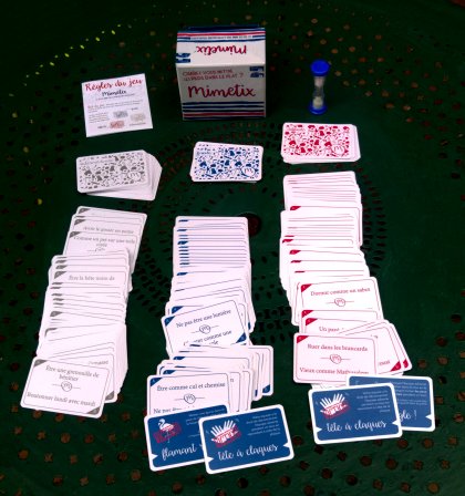 Mimetixa comme sous-titre « Le jeu de mimes des expressions françaises ». Ce n'est toutefois pas le premier jeu de mime, ni le premier jeu où il faut faire deviner des expressions. On pourrait citer le célèbre Time’s Up! ou le moins connu et néanmoins très bon D’expression en expression !. L'intérêt de cette petite et compacte boîte (10×11×6 cm) est la richesse de son contenu avec pas moins de 460 expressions à faire deviner à l'assemblée ou à votre équipe selon la variante choisie.