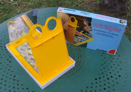 Vous devez suivre un parcours, avec un stylo, en évitant d'aller dans le décor. « Pas bien difficile », me direz-vous. Oui, sauf qu'ici, on voit le chemin à suivre dans un miroir ! Mirages se situe quelque part entre le casse-tête et le jeu de société. Dans la règle pour deux joueurs, il n'est pas véritablement prévu de déterminer un vainqueur. |