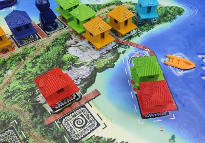 Dans chaque couleur, deux des dix paillotes sont habitées par des meeples. À vous d'attribuer une fonction spécifique à ces paillotes, par exemple :