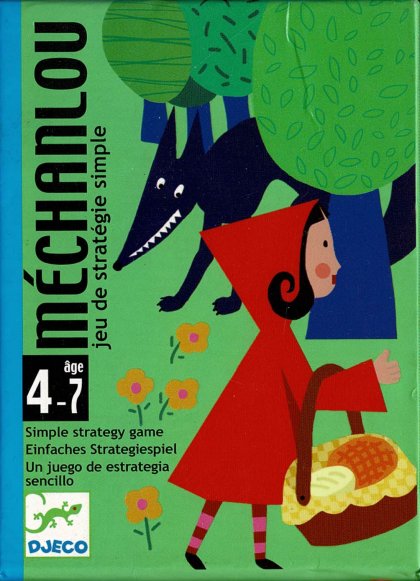 Pour reconstituer l'histoire du conte Le Petit Chaperon rouge, il va falloir poser les six cartes numérotées dans l'ordre. Méchanlou est un jeu de collecte, avec un peu de mémoire et beaucoup de coups bas puisque les joueurs peuvent se voler des cartes. Intelligente réadaptation du classique jeu de famille.