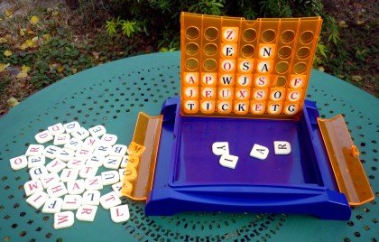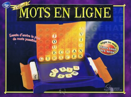 Chacun dispose d'un lot de lettres avec lequel il va s'efforcer de créer des mots. Mais le labeur est aussi ardu qu'aléatoire, puisqu'il semble bien que l'on tire les lettres une à une. On ne voit pas, dès lors, quelle stratégie pourrait être envisagée. Quel intérêt aurait-on à commencer un mot, s'il existe une chance sur deux que ce soit l'adversaire qui le termine, et donc le marque ? Et pourquoi livrer soixante-douze pions, alors que la grille ne peut en recevoir que quarante-deux ? L'idée de marier la grille du Puissance 4, et son principe d'ajout gravitationnel des pièces, à un jeu de lettres est intéressante. Mais il semble bien que l'importateur se soit totalement désintéressé des règles, pourtant indispensables pour qualifier un objet de jeu. Si vous tombez par hasard sur une boîte de Mots en ligne, il vous faudra donc inventer une règle. Peut-être est-ce en fait un jeu d'imagination ?