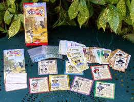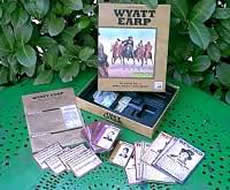 Le fait de poser des cartes modifie également les influences des joueurs sur la capture du bandit. Si un joueur est seul à poser des cartes d'un type, il touchera seul la prime. Mais dès que plusieurs joueurs s'en mêlent, il est possible qu'il faille partager. Quelques cartes « Shérif » viennent donner du piment en ajoutant des points de capture ou en perturbant la bonne marche du jeu. Heureusement, Wyatt Earp est là ! Le vaillant justicier vous protège de vos ennemis ou vous permet de les corriger… Wyatt Earp est également le nom de l'édition allemande de Mort ou Vif, chez Alea. Mort ou Vif, c'est comme le Rami, mais en mieux que le Rami. Le jeu aura du succès en famille et présentera l'avantage de ne pas trop dépayser les joueurs de cartes qui retrouveront plusieurs mécanismes et tactiques déjà connus. |