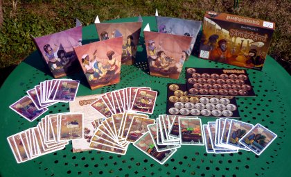 Bien sûr, toutes les marchandises ne se valent pas. La difficulté, c'est qu'il faut à la fois réunir un nombre important de cartes de même valeur, collectionner des cartes de forte valeur dans la couleur où l'on en possède le moins, mais aussi se préoccuper des chameaux pour le transport. Autant dire que le jeu n'est pas de tout repos, d'autant qu'il faut aussi surveiller ce qu'achètent les concurrents, pour ne pas leur laisser constituer de trop grosses collections. Une belle mécanique, aussi simple que complexe, et de bien belles illustrations : Le Marché de Samarkand est à essayer absolument, même si vous êtes plutôt rétif aux jeux d'enchères. |