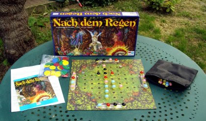 Bien qu'il faille poser des pions au lieu d'en retirer, Nach dem Regen a un air de famille avec Veleno. Ce n'est pas étonnant, puisqu'ils ont le même papa : Alex Randolph.
