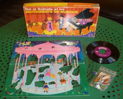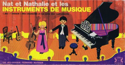 Nat et Nathalie et les instruments de musique est un genre de Loto musical, guidé par un disque 45 tours. Comme seuls les amateurs de musique ont conservé leur platine tourne-disque, ils peuvent encore y jouer, ce qui tombe plutôt bien.