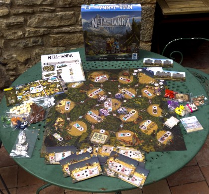 Il faut en faire des tonnes pour se faire bien voir chez les amérindiens de Nētā-Tanka, afin de décrocher la place de chef ! La mécanique principale du jeu est l'affectation de travailleurs. On place à tour de rôle ses pions pour aller effectuer telle ou telle besogne. Ici, il s'agira essentiellement de récupérer des ressources, nourriture, peaux, bois, jolis crânes, qui serviront ensuite à ériger un totem, à construire des tentes ou à nourrir le village. L'idée originale, qui donne tout son sel au jeu, est la liaison entre les différents lieux où installer ses pions. Réussir à placer deux pions sur des lieux voisins permet de bénéficier de la case située entre ces deux lieux, et donc d'une action supplémentaire. Trois pions peuvent ainsi générer jusqu'à cinq activités. La planche de jeu est habillement constituée, plaçant à proximité des actions complémentaire, par exemple, récolter du bois et ajouter du bois à son totem. Même si la règle peut sembler touffue, les indications de la planche de jeu sont très claires et il n'est jamais nécessaire de se replonger dans le livret pour comprendre le sens des icônes. Après Shakespeare, Nētā-Tanka installe Hervé Rigal parmi les auteurs à surveiller. On en redemande !