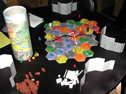 Malgré la présence de nombreux éléments en bois, Netzwerk reste peu attrayant, voire rebutant, ce qui est déjà un exploit. Les hexagones représentent la carte d'un pays dans lequel il va falloir relier les villes. Rapidement, on comprend qu'il est plus intéressant de tracer un réseau en pleine campagne, avec des raccordements vers les villes, plutôt qu'un réseau passant de villes en villes. Chaque ville rapporte un point quand elle est connectée à une autre.
