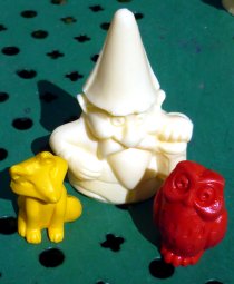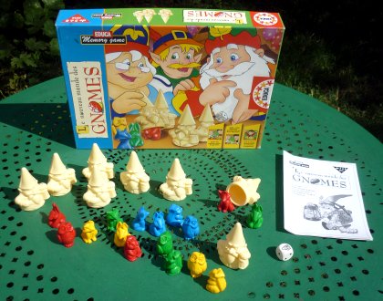 Il s'agit de cacher le premier ses animaux sous les lutins, en prenant garde de ne pas soulever un lutin qui cacherait déjà un animal. Le problème, c'est que de temps à autre, le dé nous impose de bouger les lutins sur la table. Le bonneteau Les très grosses pièces sont adaptées aux mains des jeunes joueurs, elles plaisent bien aussi aux parents. Et quand on ne joue plus, on peut toujours décorer son jardin de manière fort bourgeoise !