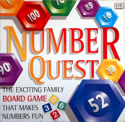 L'idée de base est de créer des nombres à partir du résultat de quatre dés et des quatre opérations élémentaires. Plus le nombre est élevé, plus il rapporte de points. De plus, un bonus est accordé quand on crée un nombre qui touche deux cases déjà jouées, ce bonus étant doublé quand il s'agit d'un nombre premier. La règle se prête facilement à des variantes. On est par exemple étonné que les couleurs des jetons des joueurs ne rentrent jamais en compte dans le score. Pourquoi alors donner des couleurs différentes à chacun ? De même, les quatre dés sont de couleur sans que cela influe en quoi que ce soit sur la partie. Comme je sais les lecteurs de l'Escale à jeux habiles et inventifs, je ne doute pas qu'ils trouvent une ou plusieurs manières de valoriser encore plus le joli matériel de jeu. Difficile à trouver, Number Quest est cependant facilement réalisable. Il suffit d'imprimer le tablier que vous trouverez en lien plus haut et d'y adjoindre quelques billets de banque factices, des jetons et quatre dés.