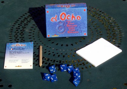 Huit dés, huit faces, but du jeu : faire huit mille points. Si El Ocho est directement inspiré du classique 10 000