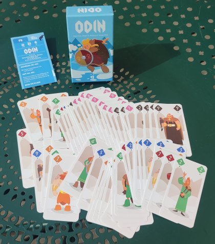 Odin est un petit jeu de cartes, malin et amusant, très joliment conçu comme tous les jeux de la collection Pocket games chez Helvetiq. Peut-être parce qu'ils n'étaient pas encore nés, les membres du Jury de Cannes 2025 ne savaient visiblement pas qu'un jeu très similaire, Gang of Four avait déjà été primé 28 ans plus tôt, jeu lui même inspiré du Le Grand Dalmuti et du traditionnel Le Trou du cul. Bien sûr, le jeu présente quelques différences, comme l'obligation de reprendre une carte de la combinaison précédente ou l'acceptation de combinaisons de cartes soit de la même couleur, soit de la même valeur, mais au bout du compte, on reste quand même sur une mécanique maintes fois déclinée.