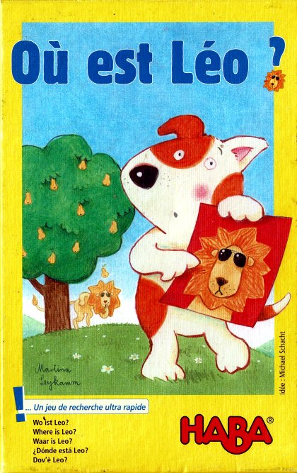 Toutes les cartes, sauf quatre, sont étalées en cercle. Chaque carte renvoie vers une autre carte. Par exemple, sur la carte avec le sous-marin, la grenouille renvoie vers le lit. Après avoir déterminé une carte de départ, les joueurs suivent les indications jusqu'à ce que la carte désignée ne soit pas visible. Il s'agit alors de l'une des quatre cartes retirées au début de la partie. Il faut alors poser son os sur cette dernière carte. Où est Léo ? rappelle un peu Rapidcroco, mais le jeu est plus simple et plus adapté aux jeunes joueurs.
