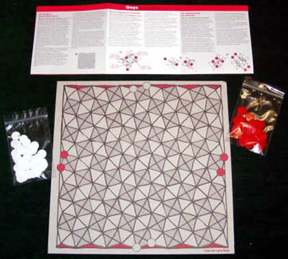Alors, de deux choses l'une : soit vous êtes éditeur et vous vous dépêchez de le publier, soit vous êtes un simple amateur de bons jeux abstraits, et vous ne pouvez pas faire grand-chose. Quoique… Sachant que vous avez, grâce à Annie Raja, la règle disponible sur Ludism et grâce à Oriol Comas i Coma, un beau dessin du tablier de jeu, j'en connais quelques uns qui seront capables de s'en bricoler un exemplaire personnel ! Fabriquer son OnyxComme je n'aime pas paraphraser ce qui est bien dit, je vous laisse lire la règle. Joyeuses parties ! Et comme l'Escale à jeux ne recule devant aucun sacrifice, vous trouverez, à la suite des règles, le tablier à télécharger en quatre versions :