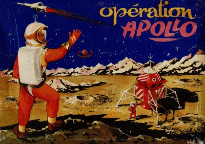 Opération Apollo ressemble à un Jeu de l’oie avec beaucoup de cases, mais ce n'est qu'une apparence : les décisions et les choix y sont heureusement plus nombreux. Le jeu est censé vous faire vivre un voyage vers la lune. Chaque vaisseau est composé de 3 parties : le lanceur, le module de commande et de service et le module lunaire. Il faut bien reconnaître que les pions qui représentent les vaisseaux ne ressemblent guère aux engins du programme Apollo. Les tenues des astronautes non plus d'ailleurs. Mais le but n'est pas de ressembler à la réalité mais de présenter de manière ludique un voyage vers la lune avec ses étapes et ses dangers. Pour collectionneurs…
