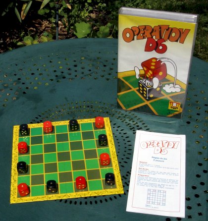 Pour cela, il faudra sauter par-dessus les autres dés, pour augmenter la valeur de votre dé, tout en évitant que l'adversaire ne profite de vos dés plus vite que vous. Un dé augmente sa valeur lorsqu'il saute un dé de même valeur ou d'une valeur juste supérieure. Opération D6 ne comporte donc aucune prise. Il s'agit d'une course tactique, où le placement judicieux de vos dés vous fera gagner ou perdre. Le mode de déplacement est assez inhabituel, et offre de très nombreuses possibilités à chaque coup : un dé soit se déplace d'une case, soit saute un ou plusieurs autres dés (quel que soit leur camp), et finit par se déplacer d'une case. Belle idée. |
