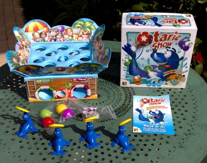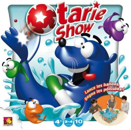 Chacun le sait : quand nous pensons voir, dans les parcs aquatiques, des otaries jouer avec des ballons, nous les voyons en fait trimer pour gagner quelques poissons. Et c'est ce qu'elles font dans Otarie Show en essayant d'atteindre les bouées qui leur feront gagner quelques poissons. Le matériel est bien pensé, avec une boîte qui se transforme en bassin. Lorsque notre ballon atteint une bouée, nous gagnons quelques poissons. Lorsqu'il n'y a plus de bouée, un trou se révèle qui mène à un chemin avec parfois des avantages, comme échanger une bouée ou en gagner une.