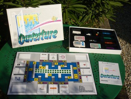 Ouverture, d'après la documentation jointe, aurait été conçu par un enseignant. Mais on a préféré taire son nom. Le jeu étant outrancièrement sponsorisé, la règle est disséminée parmi les multiples publicités du livret. L'idée du jeu est de monter des entreprises. Pour cela, il faudra répondre à des questions économiques et sociales pour gagner les divers éléments. Autant dire qu'on s'amuse énormément…