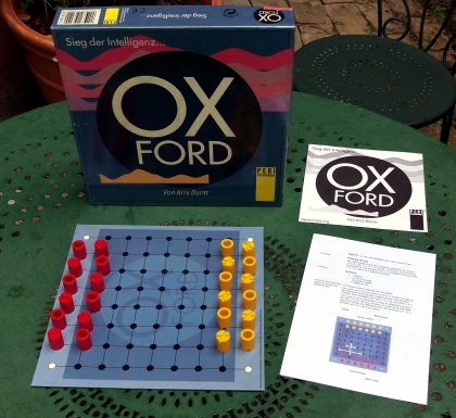 Oxford emprunte au Tic-Tac-Toe le système des « O » et des « X » pour en faire un jeu totalement différent. Chacun possède au départ 3 pièces de chaque type. Une pièce qui se déplace est ensuite retournée. Le but du jeu est d'obliger l'adversaire à ne plus avoir en jeu que des pièces d'un seul type, en réduisant ses possibilités par la prise ou le blocage. Les pièces en réserve peuvent aussi rentrer en jeu mais un joueur ne peut jamais avoir plus de 6 pièces en jeu. Toutes ces contraintes donnent un grand intérêt à ce jeu qui ne ressemble à aucun autre. Peut-être faut-il voir là une marque de fabrique de Kris Burm.