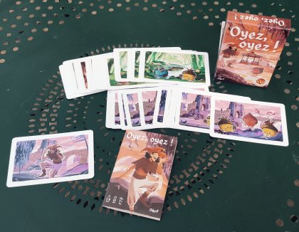 C'est devenu une tradition : les festivals ludiques aiment co-publier un jeu à l'occasion de leur rendez-vous annuel. À Parthenay, en 2023, le Festival Ludique International de Parthenay s'est ainsi associé à Subverti et son auteur vedette, Jeremy Partinico pour nous proposer un petit jeu de mémoire très simple : Oyez, Oyez !. Joueur après joueur, des cartes sont piochées et disposées en pile pour constituer une promenade dans la ville médiévale de Parthenay. Après chaque carte posée, une question est posée au joueur suivant sur le nombre de fois où un lieu a été visité ou un personnage rencontré. Il s'agit de ne pas se tromper pour ne pas prendre de pénalité. En cas de contestation, tous les joueurs doivent se positionner et encourir également une pénalité.