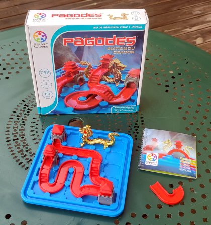 L'intérêt de ce casse-tête de placement est que les pièces sont des chemins avec des extrémités parfois au niveau du sol, parfois au premier étage. Et comme les pagodes ont des entrées aux deux niveaux, quelques problèmes sont vraiment difficiles.
