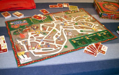 Le jeu est destiné à un public familial, et même touristique. Je ne doute pas qu'avoir vécu un Patum doit donner plus de goût au jeu. Patim Patam Patum souffre malheureusement de quelques défauts. La traduction française a été faite par un Catalan ; j'aime beaucoup les Catalans, mais ils ont un gros défaut : ils croient parler français. La règle fourmille ensuite de détails qui, à mon avis, compliquent inutilement le jeu. Enfin, la durée de jeu est beaucoup trop longue pour un jeu de bagarre, où le hasard et les coalitions sont aussi importants. |