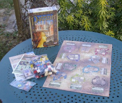 Ici, les joueurs rivalisent pour prendre possession des tours les plus intéressantes, dans neuf ou dix villes d'Italie. Dans son principe et son apparence, Patrizier fait songer à Manhattan. Mais c'est alors un Manhattan pour esprit torturé, car la moindre action est ici pesée et re-pesée, tant elle influence les tours suivants et la fin de partie. Cela aboutit hélas parfois à des temps de réflexion importants, qui alourdissent un peu le jeu à quatre ou cinq joueurs. Les parties sont étonnamment courtes. De fait, on n'a pas vraiment le temps d'élaborer une stratégie et les choix sont essentiellement tactiques et opportunistes. Ceci dit, si les parties sont courtes et parfois un peu frustrantes, pour les perdants « qui allaient gagner », rien n'empêche d'en enchaîner plusieurs. Ambassadeurs et Messagers