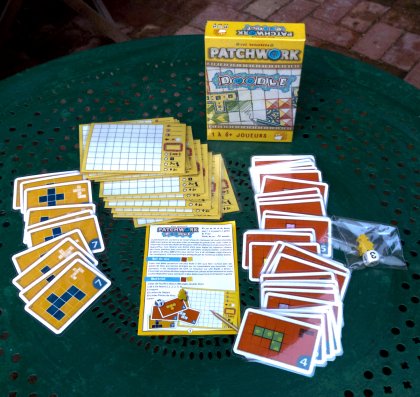 Patchwork Doodle se pratique avec un nombre de joueurs quelconque. Vous ne serez limité que par le nombre de chaises et de crayons en votre possession. Le mécanisme central est le fameux « Roll & Write », très à la mode dans les années 2010. Le dé va ici désigner une forme que tous les joueurs devront (ou non) dessiner sur leur feuille. Pour marquer un maximum de points, il faut s'efforcer de présenter, lors des décomptes qui ont lieu tous les six tours, l'ensemble le plus compact et carré possible. À l'issue de la troisième manche, chaque carré non rempli fera perdre un point. Si le thème et l'approche générale sont identiques à ceux de Patchwork, la mécanique est très différente. Bien que toutes les pièces possibles soient visibles, le hasard du dé intervient et peut mettre à mal les plans les plus élaborés. Même s'il ne parvient pas à détrôner les meilleurs jeux du genre, Patchwork Doodle est agréable à jouer et peut se pratiquer avec tous les publics, y compris les enfants et les joueurs peu chevronnés.