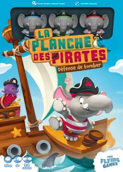 La Planche des pirates est un jeu de prise de risque pour 2 à 4 pirates. À tour de rôle, chacun essaye de retourner le plus de cartes possible pour alourdir la planche de tous ses adversaires. Pour cela, on tire des cartes une à une dans le coffre du capitaine. Plus on tirera de cartes, plus on pourra mettre les adversaires en difficulté. Mais attention à ne pas faire apparaître deux fois la même carte car alors, c'est vous qui avez un problème : il vous faut avancer votre figurine sur sa planche. Et si vos adversaires vous ont fait poser trop de poids, vous risquez bien de tomber à l'eau ! Il n'y a pas de gagnant à La Planche des pirates mais un seul perdant ! Le jeu est servi par un matériel tout à fait exceptionnel avec une boîte qui devient un bateau et des éléphants-pirates tout mignons tout plein. Du coup, parents et grands-parents ont autant de plaisir à y jouer que leurs moussaillons.