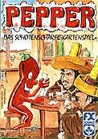Le jeu n'en est pas moins intéressant. Ce n'est certes pas « LE » jeu de messieurs Kiesling et Kramer, mais un agréable jeu d'apéritif. Les cartes sont de 6 couleurs et numérotées de 1 à 18. On ne joue avec la totalité des cartes que quand on est 9, sinon, certaines cartes sont retirées. La carte 1 de chaque couleur, le Piment, a un comportement spécial. Celui qui en reçoit doit les déposer devant lui. Il n'y a pas d'obligation à les jouer quand leur couleur est demandée, même si on n'a plus de carte de la couleur. À chaque pli, le premier joueur pose une carte, soit de sa main soit un Piment. Les joueurs suivent en fournissant à la couleur quand ils le peuvent, ou en défaussant. Chacun peut jouer soit une carte de sa main, soit un Piment qu'il possède devant lui. Le pli est remporté par le joueur qui a mis la plus forte carte de la couleur demandée. Les éventuels Piments sont extraits du pli et déposés devant le malheureux. La partie s'arrête quand un joueur n'a plus de cartes. On compte alors les points négatifs de ceux qui possèdent des Piments devant eux : ils décaissent 2 points par Piment, plus 1 point par carte de même couleur qu'ils ont ramassée dans leurs plis. NB : On peut jouer jusqu'à 9 joueurs, ce qui est assez rare pour être signalé. |