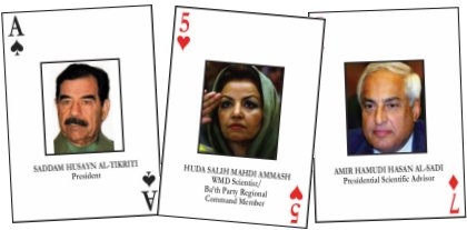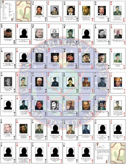 L'idée de faire un jeu de cartes pour les soldats engagés dans un conflit ne date pas de la seconde guerre du Golfe. De telles cartes avaient déjà été utilisées lors de la guerre civile étatsunienne, de la seconde guerre mondiale et de la guerre de Corée. La tentation était grande de parodier les cartes diffusées par la DIA
