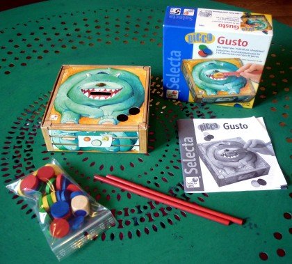 Le principe directeur de Picco Gusto est le même que dans Next : tandis que le joueur actif essaye laborieusement de mener à bien une tâche difficile, ses adversaires jettent frénétiquement un dé pour tenter d'obtenir la face qui leur permettra de prendre la place de l'exécutant. Ici, le travail consiste à rentrer ses jetons dans la gueule du monstre, à l'aide d'une paire de baguettes chinoises. Le travail est d'autant plus ardu que le terrain de jeu est lisse : les jetons sont alors beaucoup plus difficiles à saisir. Amusant.