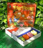 Pig Pong est la version économique du même jeu. Les joueurs essayent de repousser des volants en matière légère, à l'aide de soufflets-cochons au-dessus d'un petit filet de volley. Indispensable ! |