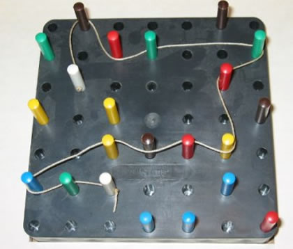 | Caractéristiques | cordes et ficelles, jeu de pions, tablier carré et pions, tablier 7 x 7 cases et pions | |||
