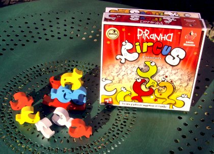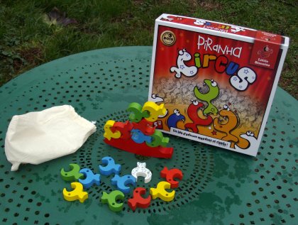 Bien que l'idée des jeux d'équilibre ne soit pas neuve, Piranha Circus renouvelle agréablement le genre, en proposant une pièce unique en forme de poisson, capable de s'accrocher partout. On peut jouer à plusieurs, mais aussi seul ou en coopération, pour réaliser les dix figures de difficulté progressive proposées par l'auteur. Piranha Circus est réalisé en bois par des artisans du Jura. Bien que ça puisse faire mal au cœur d'abandonner une si jolie boîte à la maison, on peut emporter facilement le jeu en balade ou en week-end, grâce au sac en tissu fourni. Piranha Circus 2 joueurs