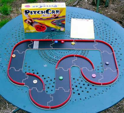 PitchCar mini, sorti à Essen en 2004, c'est le même jeu que PitchCar, mais en plus petit. On peut maintenant jouer partout, même sur une tablette de compartiment TGV !