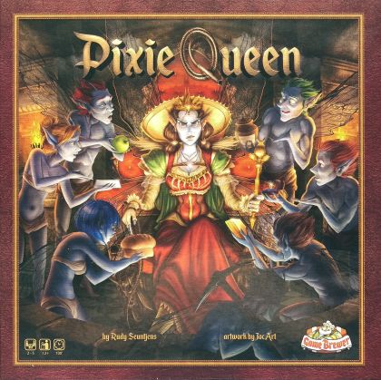 On n'est pas là pour rigoler ! La reine Pixie exige son tribut : du miel, du pain ou des pommes, on ne sait jamais à l'avance, mais elle ne refuse pas non plus l'argent et l'or ! Nous, pauvres Pixies, devons crapahuter pour la satisfaire en allant chaparder ce qu'elle demande pour rivaliser avec nos adversaires en flatteries et bassesses. Les plus flagorneurs gagneront de recevoir un peu moins de coups de fouets que les autres. Ils éviteront ainsi d'être envoyés comme esclaves à la mine. Il est agréable de voir un jeu au thème aussi fort, où l'on peut choisir comme action d'infliger des coups de fouets aux adversaires, le tout dans une franche bonne humeur. Mais au-delà de l'ambiance, c'est à un réel bon jeu aux mécanismes subtils et variés qu'on a affaire. La qualité des composants est aussi au rendez-vous, ce qui ne gâche rien. Pixie Queen est, il me semble, le premier jeu publié par Game Brewer. On a hâte de voir ce qu'ils vont nous brasser par la suite !