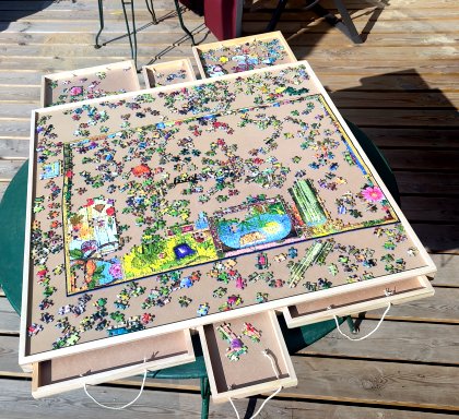La solution ultime pour les amateurs de puzzlesVous êtes amateur de puzzles et vous êtes parfois contraint de choisir entre votre passion et garder disponible la table de salle-à-manger. Il existe plusieurs solutions connues comme une grande planche ou un tapis de puzzle. Nous avons opté pour le plateau de puzzle, une solution un peu coûteuse mais pleinement satisfaisante.